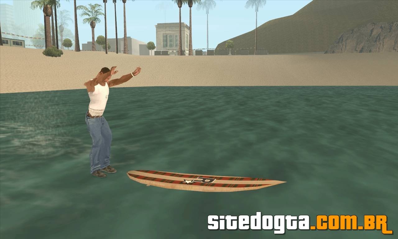 Para surfar, vá até a água e segure a tecla TAB até que ele suba na prancha.